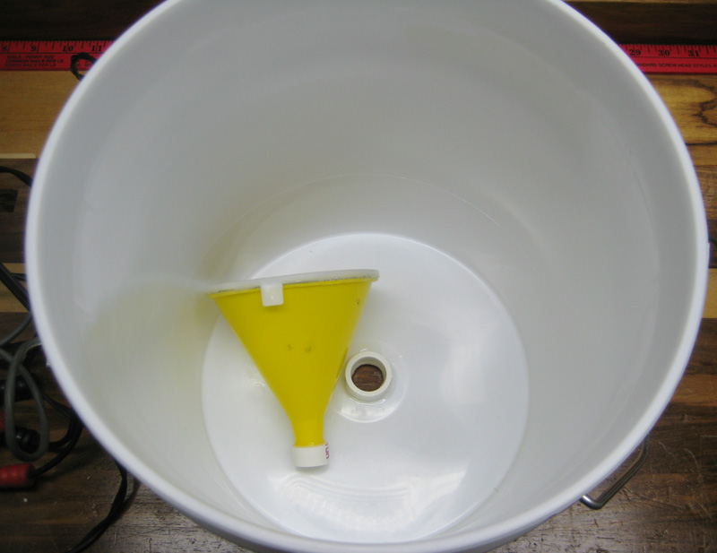 Thanks very much Chris! Just one last question and I will stop bothering you. When it comes to your light over the bucket trap do you have a funnel of some sort resting underneath the light and bungee cords and what is it exactly or where can it be gotten? Thanks!