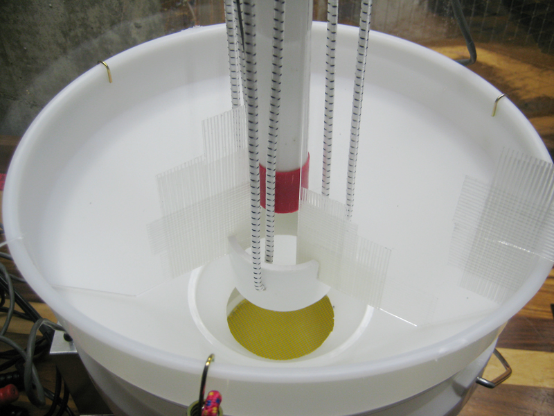 Disadvantages: Acrylic is not durable enough for long term use, the ideal material would be aluminum. Joints on the acrylic had to be reinforced with strapping tape – thicker acrylic might be better…. The bucket and vanes are so light that it must be staked down in the field. Poorly made by a non-engineer.